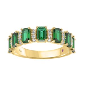 14K YELLOW GOLD 2CT ROUND/EMERALD DIAMOND LADIES BAND(COLOR STONE GREEN EMERALD DIAMOND 1 7/8CT)