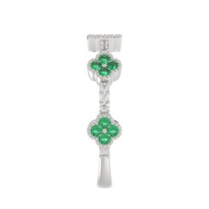 18K WHITE GOLD 1/4CT ROUND DIAMOND LADIES RING(COLOR STONE ROUND GREEN EMERALD DIAMOND 1/10CT)