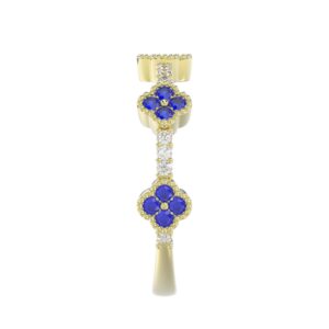 18K YELLOW GOLD 1/4CT ROUND DIAMOND LADIES RING(COLOR STONE SAPPHIRE DIAMOND 1/10CT)