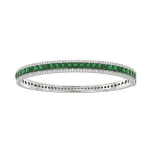 14K WHITE GOLD 4 1/3CT ROUND/PRINCESS DIAMOND LADIES BANGLE(COLOR STONE PRINCESS GREEN EMERALD DIAMOND 3 1/4CT)