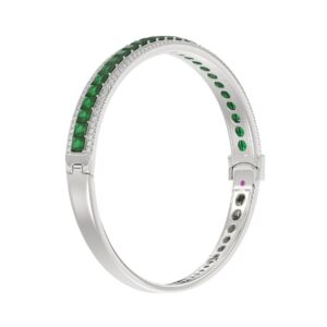 14K WHITE GOLD 8CT ROUND/BAGUETTE/EMERALD DIAMOND LADIES BANGLE(COLOR STONE GREEN EMERALD DIAMOND 4 3/4CT)