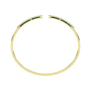 18K YELLOW GOLD 1/2CT ROUND/BAGUETTE DIAMOND LADIES BANGLE (SOFT WHITE ENAMEL)