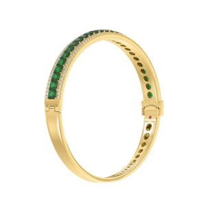 14K YELLOW GOLD 8CT ROUND/BAGUETTE/EMERALD DIAMOND LADIES BANGLE(COLOR STONE GREEN EMERALD DIAMOND 4 3/4CT)