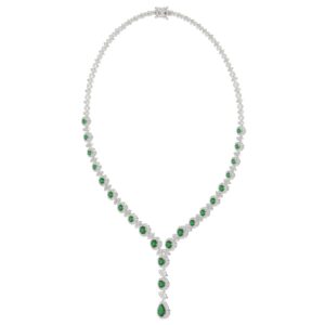18K WHITE GOLD 8 1/2CT ROUND/PEAR DIAMOND LADIES NECKLACE