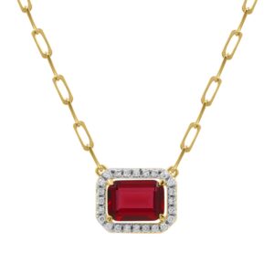 18K YELLOW GOLD 1.00CT ROUND/EMERALD DIAMOND LADIES NECKLACE (COLOR STONE EMERALD RUBY DIAMOND 7/8CT)