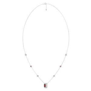 14K WHITE GOLD 3/8CT ROUND/BAGUETTE/PINK SAPPHIRE DIAMOND LADIES NECKLACE (EMERALD DIAMOND 1/3CT)