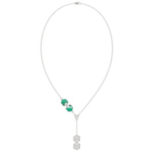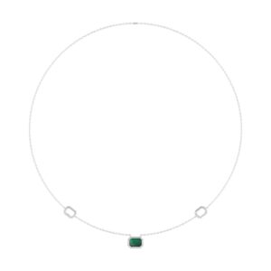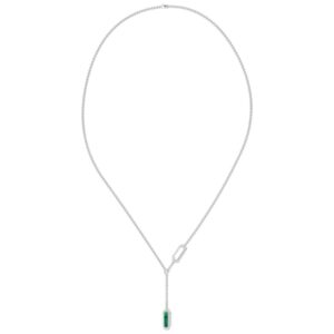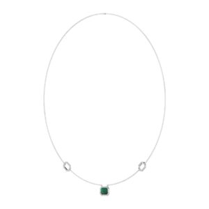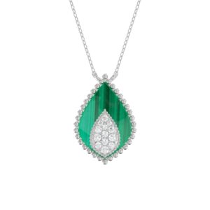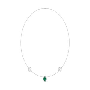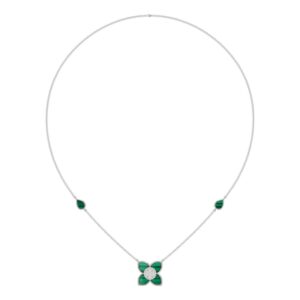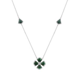 18K WHITE GOLD 1/5CT ROUND DIAMOND MALACHITE LADIES NECKLACE