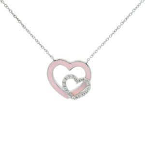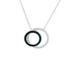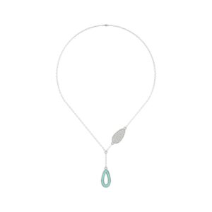 18K WHITE GOLD 1/6CT ROUND DIAMOND LADIES NECKLACE (CELESTE BLUE ENAMEL)