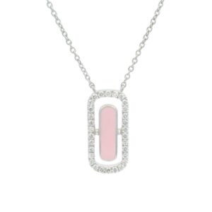 18K WHITE GOLD 1/4CT ROUND/BAGUETTE DIAMOND LADIES NECKLACE (CELESTE BLUE ENAMEL)