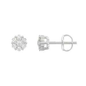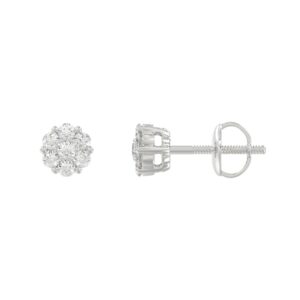 14K WHITE GOLD 1/4CT ROUND DIAMOND LADIES FLOWER EARRINGS