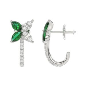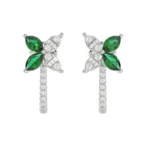14K WHITE GOLD 1/3CT ROUND/BAGUETTE/MARQUISE DIAMOND LADIES EARRINGS(COLOR STONE MARQUISE GREEN EMERALD DIAMOND 3/4CT)