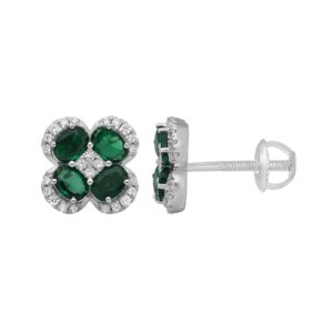 14K WHITE GOLD 1CT ROUND DIAMOND LADIES FLOWER EARRINGS