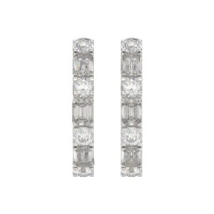 14K WHITE GOLD 1CT ROUND/BAGUETTE DIAMOND LADIES EARRINGS