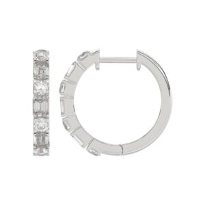 14K WHITE GOLD 1CT ROUND DIAMOND LADIES HOOPS EARRINGS