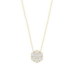 14K YELLOW GOLD 1/3CT ROUND DIAMOND LADIES FLOWER PENDANT WITH CHAIN