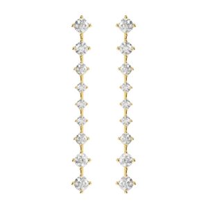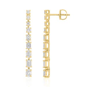 18K YELLOW GOLD 2.00CT ROUND/EMERALD/OVAL DIAMOND LADIES EARRINGS