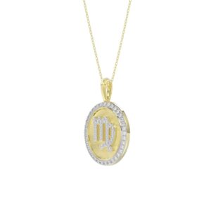 10K YELLOW GOLD 1/5CT ROUND/BAGUETTE DIAMOND LADIES PENDANT WITH CHAIN
