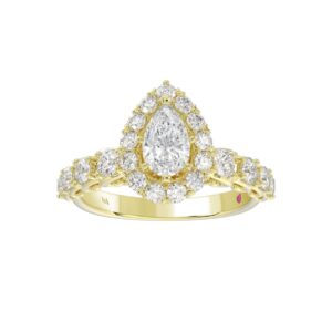 18K YELLOW GOLD 1.00CT ROUND DIAMOND SEMI MOUNT LADIES RING (CENTER STONE PEAR DIAMOND 1.00CT)
