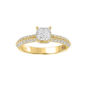 18K YELLOW GOLD 1 1/2CT ROUND/PRINCESS DIAMOND SEMI MOUNT LADIES RING (CENTER STONE PRINCESS DIAMOND 1CT)