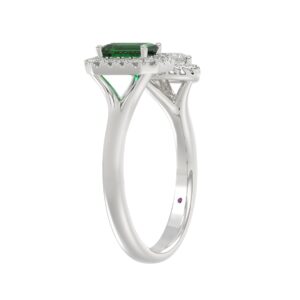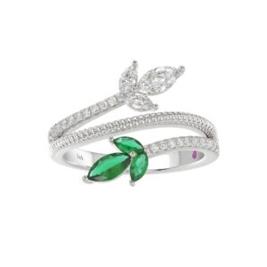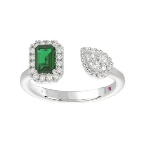 14K WHITE GOLD 1CT ROUND/EMERALD/PEAR DIAMOND LADIES RING(COLOR STONE GREEN EMERALD DIAMOND 1/4CT)
