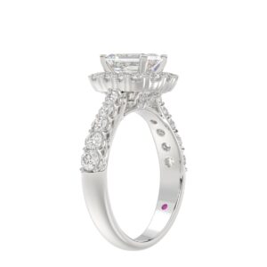 14K WHITE GOLD 1CT ROUND/BAGUETTE/EMERALD DIAMOND LADIES RING(CENTER STONE EMERALD DIAMOND 1/2CT)