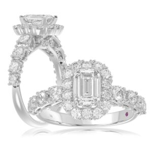 14K WHITE GOLD 1CT ROUND/EMERALD DIAMOND LADIES BRIDAL SET(CENTER STONE EMERALD DIAMOND 1/2CT)