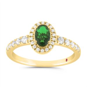 10K YELLOW GOLD 5/8CT ROUND/ROUND GREEN EMERALD DIAMOND LADIES RING