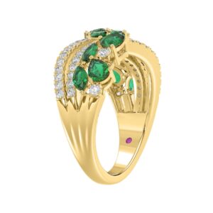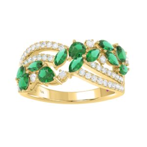 14K YELLOW GOLD 1/3CT ROUND/MARQUISE/PEAR DIAMOND LADIES FASHION RING( COLOR STONE MARQUISE GREEN EMERALD DIAMOND/PEAR 1.45CT/ 12 STONE)