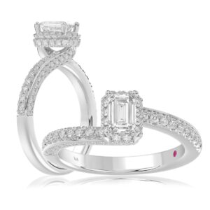 18K WHITE GOLD 1 1/4CT ROUND/EMERALD DIAMOND LADIES RING(CENTER STONE EMERALD DIAMOND 3/4CT)