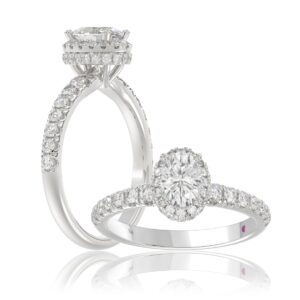18K WHITE GOLD 1 1/4CT ROUND/OVAL DIAMOND LADIES RING(CENTER STONE OVAL DIAMOND 3/4CT)