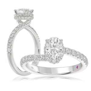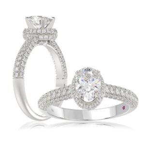 18K WHITE GOLD 1 1/4CT ROUND/PEAR/OVAL DIAMOND SEMI MOUNT LADIES RING (CENTER STONE OVAL DIAMOND 1.00CT)