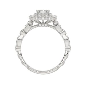 18K WHITE GOLD 1 1/6CT ROUND/MARQUISE/OVAL/PEAR DIAMOND LADIES RING (CENTER STONE EMERALD DIAMOND 7/8CT)