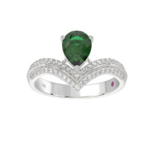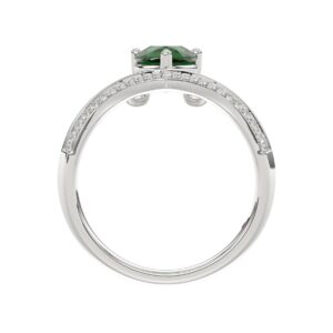 18K WHITE GOLD 1 1/5CT ROUND/OVAL DIAMOND LADIES RING(COLOR STONE OVAL GREEN EMERALD DIAMOND 3/4CT)