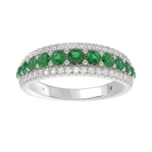18K WHITE GOLD 1 1/6CT ROUND DIAMOND LADIES BAND(COLOR STONE ROUND GREEN EMERALD DIAMOND 7/8CT)