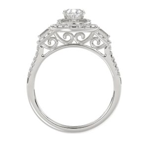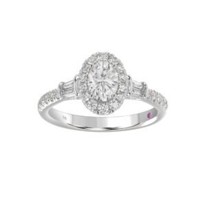 18K WHITE GOLD 1 1/4CT ROUND/BAGUETTE/OVAL DIAMOND LADIES RING(CENTER STONE OVAL DIAMOND 3/4CT)