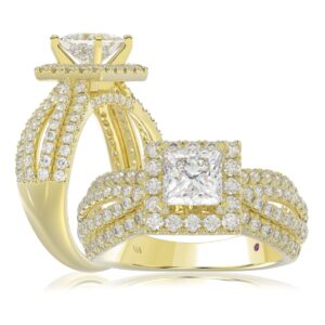 14K YELLOW GOLD 2 1/4CT ROUND/PRINCESS DIAMOND LADIES BRIDAL SET(CENTER STONE PRINCESS DIAMOND 3/4CT)