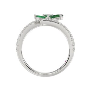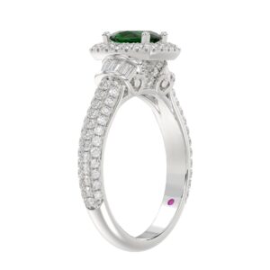 14K WHITE GOLD 1 1/2CT ROUND/BAGUETTE/OVAL DIAMOND LADIES FASHION RING(COLOR STONE OVAL GREEN EMERALD DIAMOND 3/4CT)