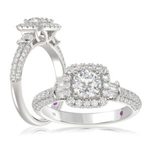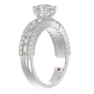 14K WHITE GOLD 1 1/2CT ROUND/BAGUETTE DIAMOND LADIES RING(CENTER STONE ROUND DIAMOND 7/8CT)