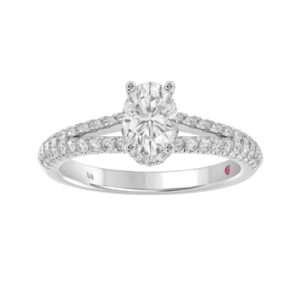 18K WHITE GOLD 1CT ROUND/OVAL DIAMOND LADIES SEMI MOUNT RING(CENTER STONE OVAL DIAMOND 3/4CT)