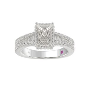 18K WHITE GOLD 1/2CT ROUND/BAGUETTE DIAMOND LADIES SEMI MOUNT RING(CENTER STONE MOUNT OVAL DIAMOND 1CT)