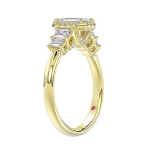 18K YELLOW GOLD 1 1/2CT ROUND/EMERALD DIAMOND LADIES RING(CENTER STONE EMERALD DIAMOND 3/4CT)