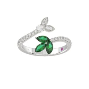18K WHITE GOLD 7/8CT ROUND/PEAR/EMERALD DIAMOND LADIES RING(COLOR STONE GREEN EMERALD DIAMOND 1/3CT / PEAR DIAMOND 1/4CT)
