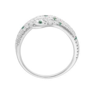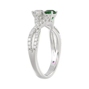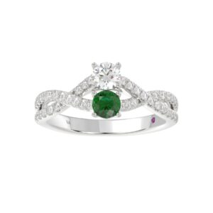 18K WHITE GOLD 7/8CT ROUND DIAMOND LADIES RING(COLOR STONE ROUND GREEN EMERALD DIAMOND 1/4CT)