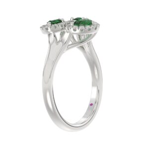 18K WHITE GOLD 7/8CT ROUND/EMERALD DIAMOND LADIES RING(COLOR STONE EMERALD/MARQUISE DIAMOND 5/8CT