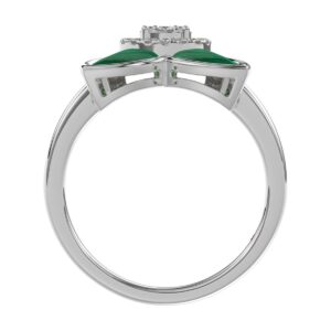 18K WHITE GOLD 1/4CT ROUND DIAMOND LADIES RING(COLOR STONE ROUND GREEN EMERALD DIAMOND 1/10CT)