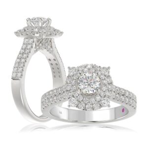 14K WHITE GOLD 1 1/3CT ROUND DIAMOND LADIES RING(CENTER STONE ROUND DIAMOND 3/4CT)
