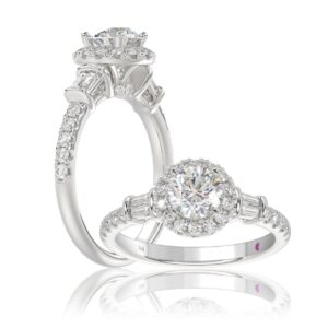 14K WHITE GOLD 1 1/4CT ROUND/BAGUETTE DIAMOND LADIES RING( CENTER STONE ROUND DIAMOND 3/4 CT)