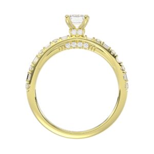 18K YELLOW GOLD 1 1/4CT ROUND/BAGUETTE/EMERALD DIAMOND LADIES BRIDAL SET(CENTER STONE EMERALD DIAMOND 3/4 CT)