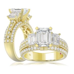 18K YELLOW GOLD 1/2CT ROUND/EMERALD DIAMOND LADIES RING(CENTER STONE EMERALD DIAMOND 2CT)