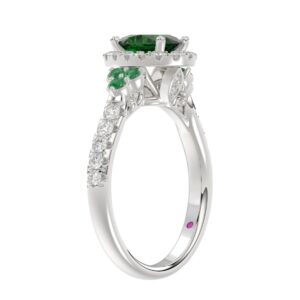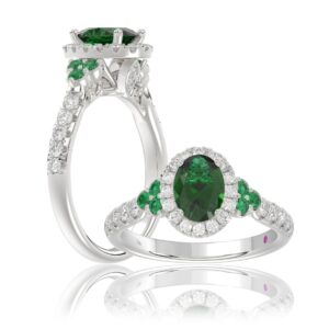 14K WHITE GOLD 1 3/8CT ROUND/OVAL DIAMOND LADIES FASHION RING(COLOR STONE OVAL GREEN EMERALD DIAMOND 1CT)